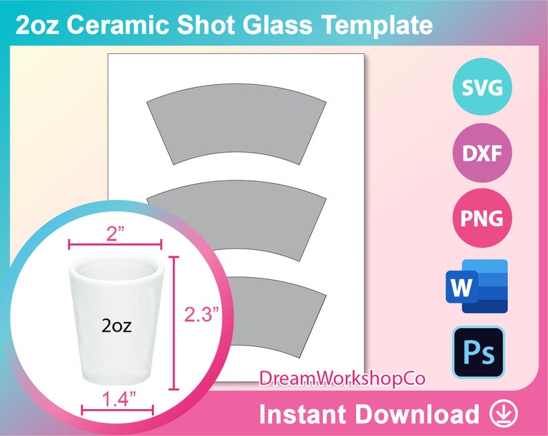 2oz Ceramic Shot Glass Template Sublimation Ms Word PSD Etsy