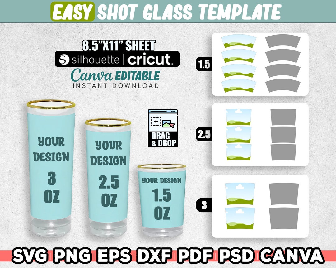 1 5oz Shot Glass Template Sublimation Ms Word Canva PSD Etsy