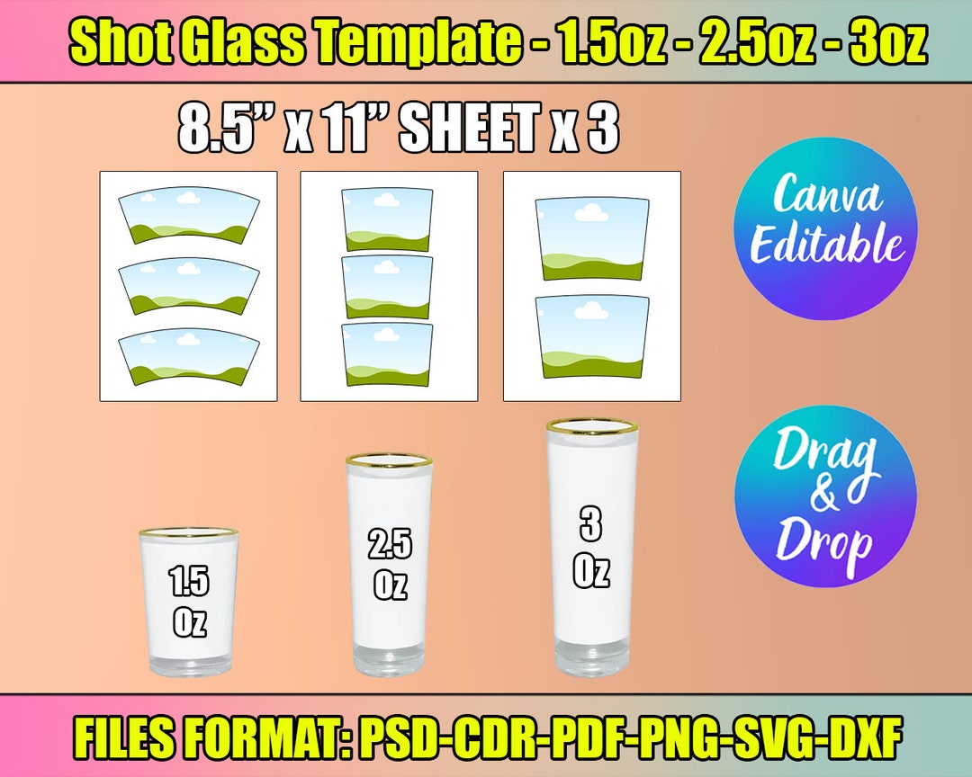 2 5oz Shot Glass Template Sublimation Canva Ms Word PSD PNG SVG