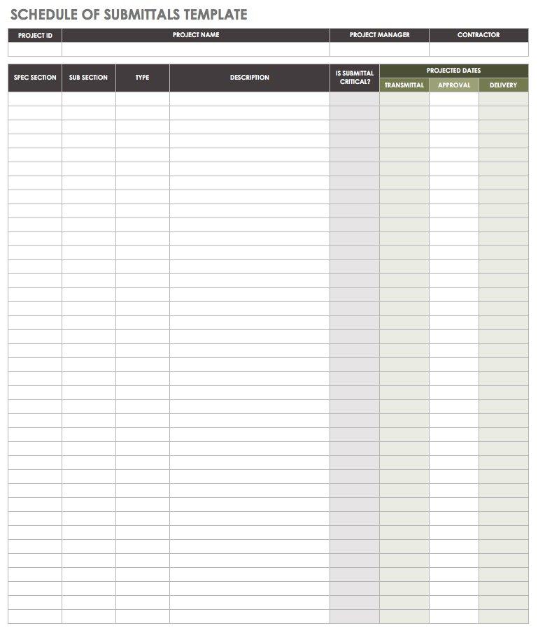 Submittal Schedule Template Excel prntbl concejomunicipaldechinu gov co