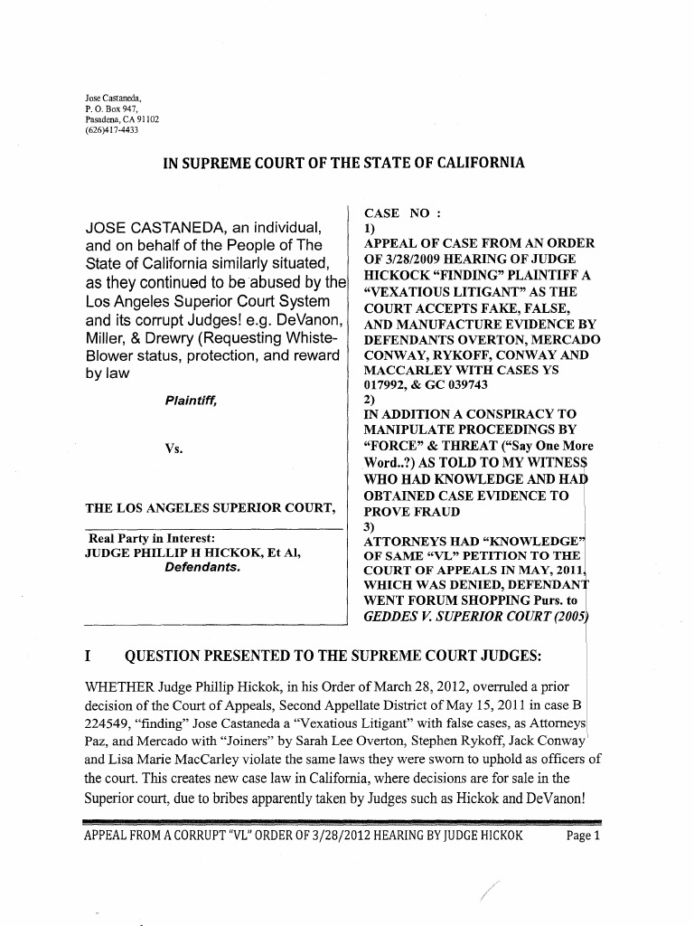 In The Supreme Court of California Appeal of False Fake Vexatious