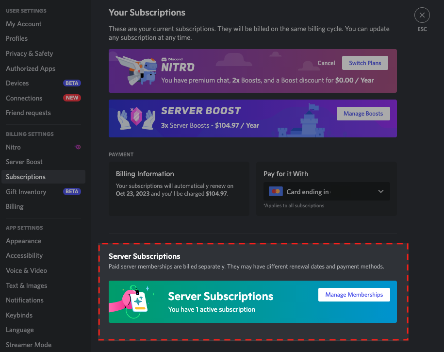 Server Subscriptions for Members Discord
