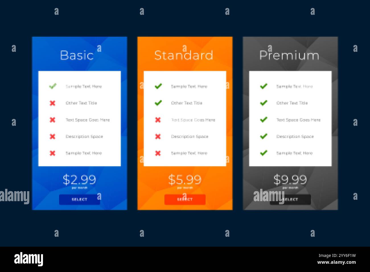 Subscription Plans and Pricing Table Template Design Stock Illustration