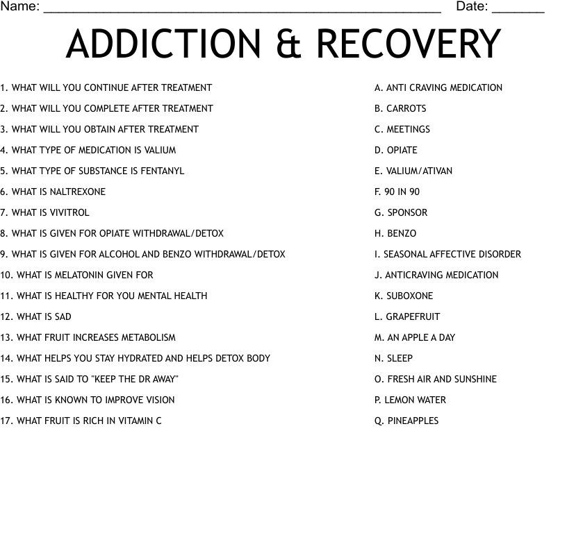 Addiction Recovery Crossword Puzzle