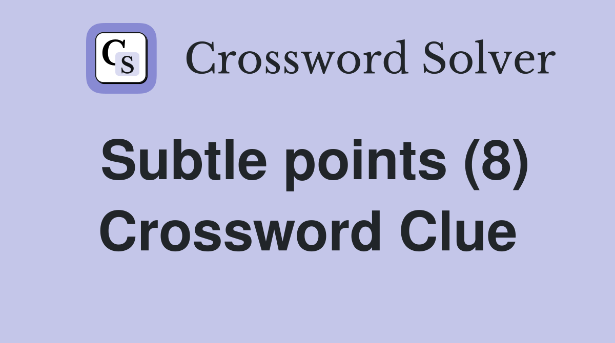 Subtle points (8) Crossword Clue Answers Crossword Solver