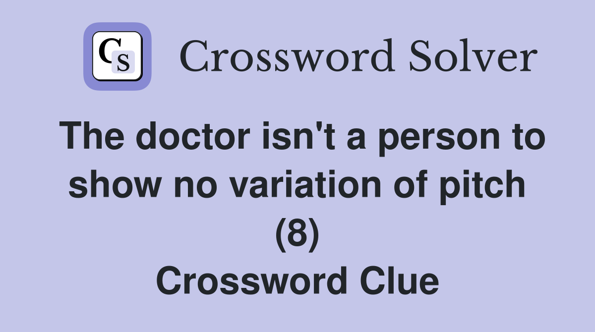 The doctor isn t a person to show no variation of pitch (8) Crossword
