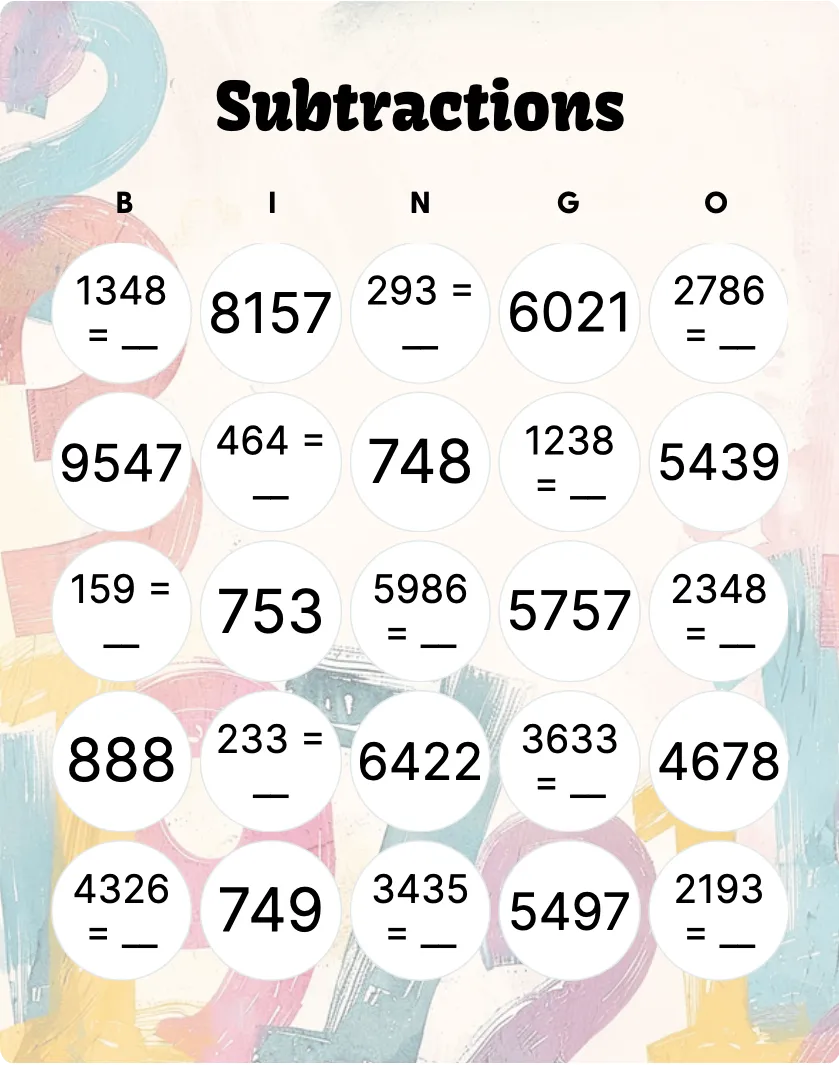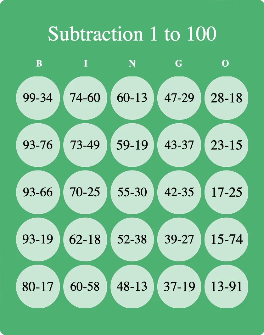 Subtraction Bingo: Printable Customizable Bingo Card Creator