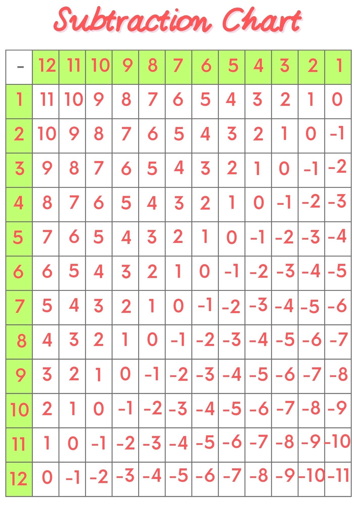Here are some of the images for Subtraction Chart Printable that we found in our website database.