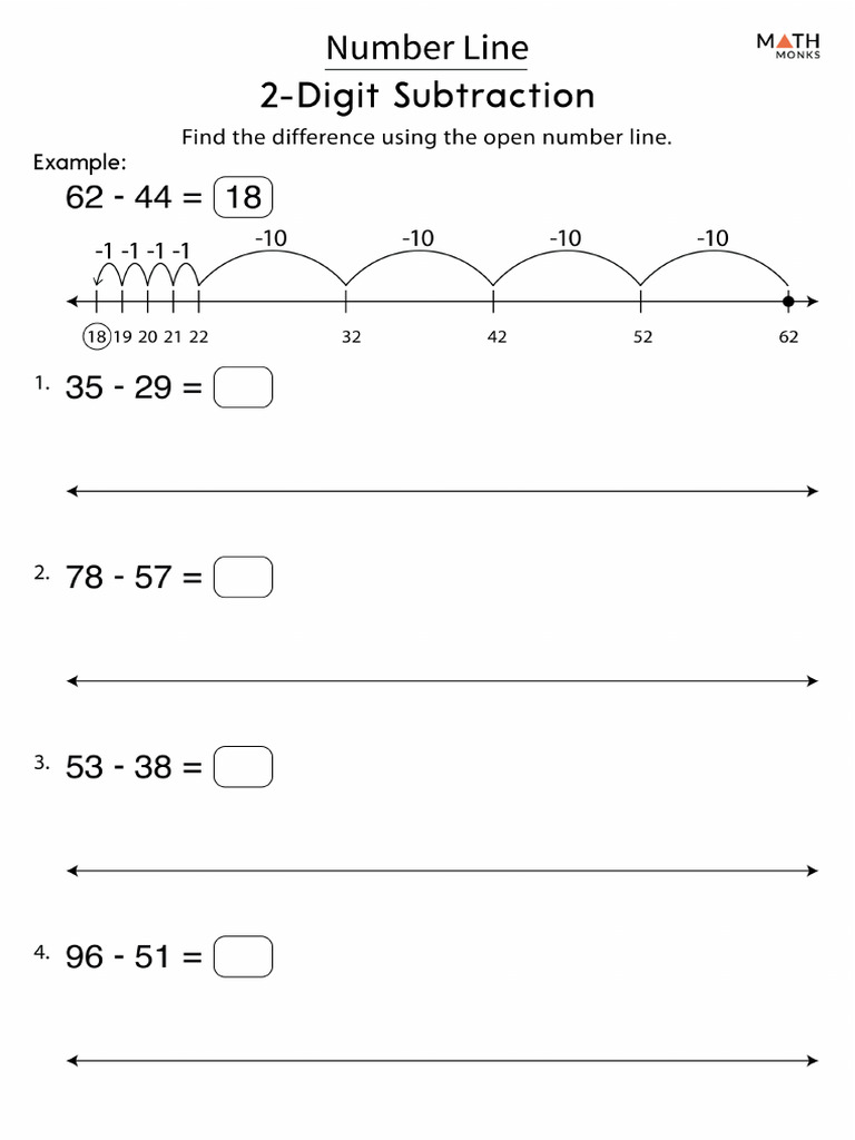 Number Line Subtraction Worksheets Math Monks