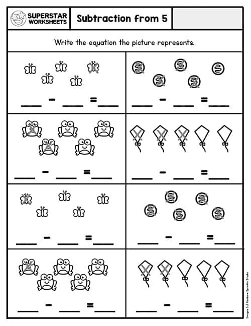 Subtraction worksheets for kindergarten with pictures