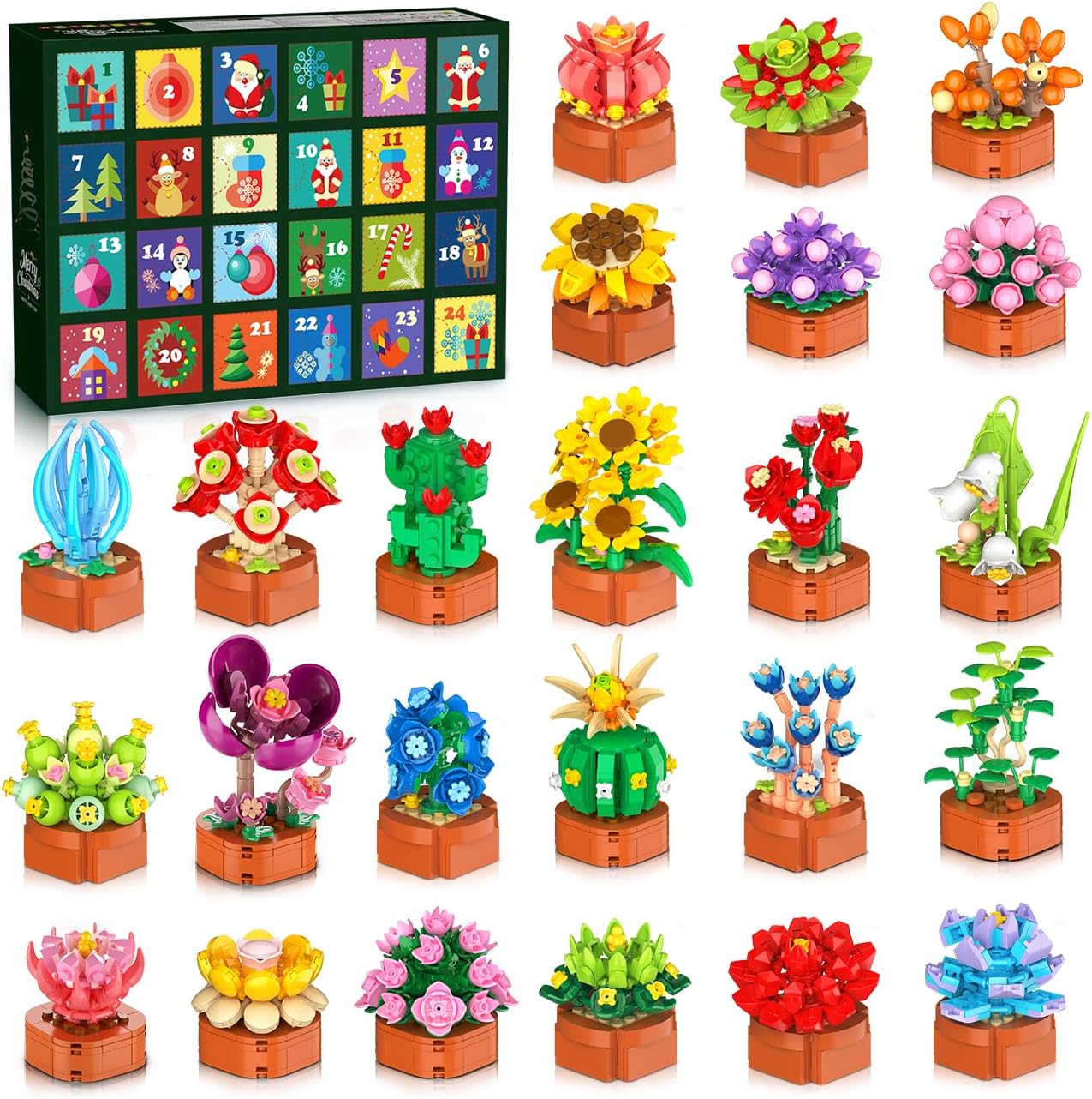 Advent Calendar 2024 Girls 24 Pack Succulent Bouquet Building Blocks