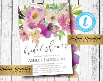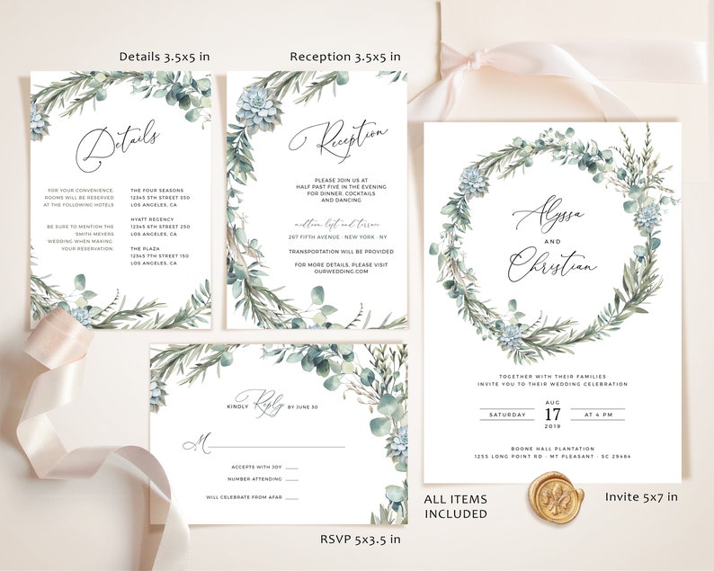 Succulent Invitation Template Set with Rosemary Eucalyptus Etsy