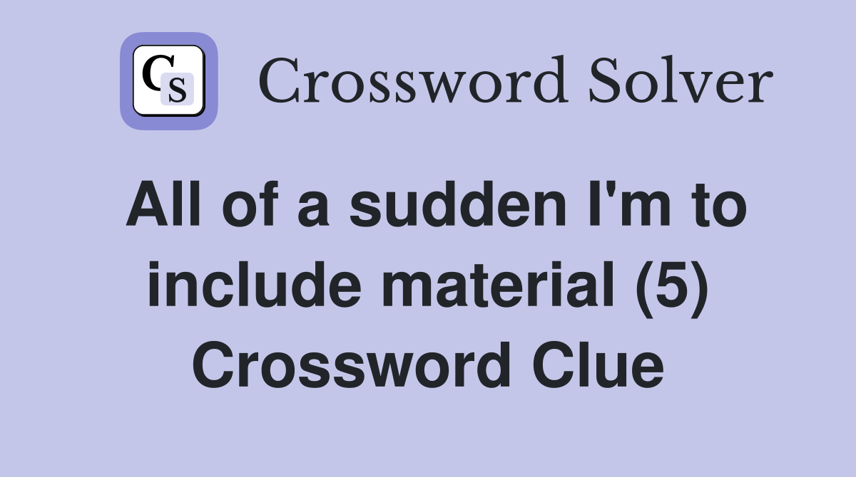All of a sudden I m to include material (5) Crossword Clue Answers