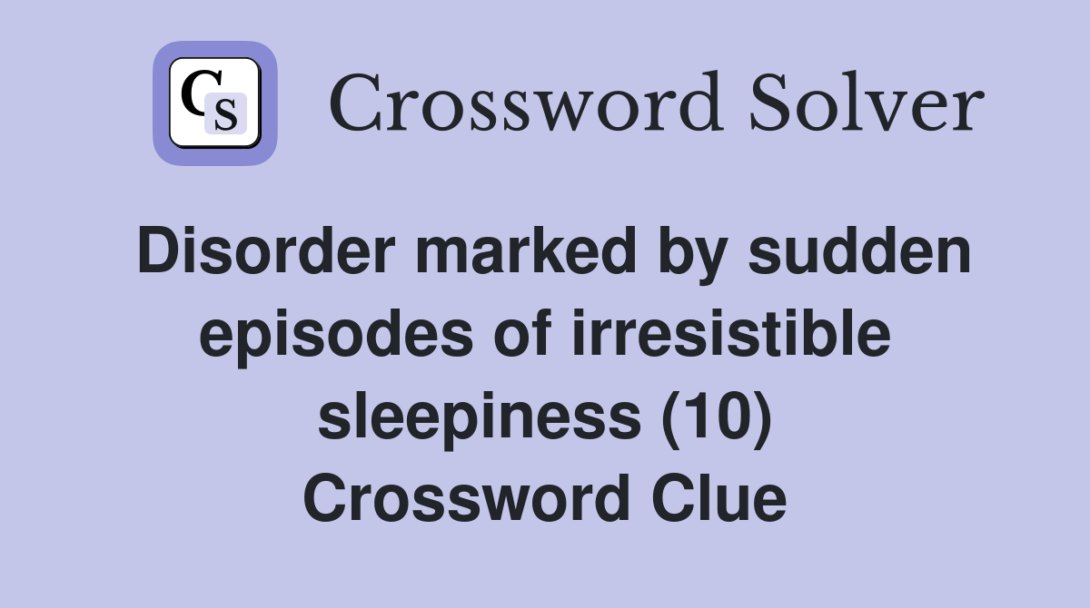 Disorder marked by sudden episodes of irresistible sleepiness (10