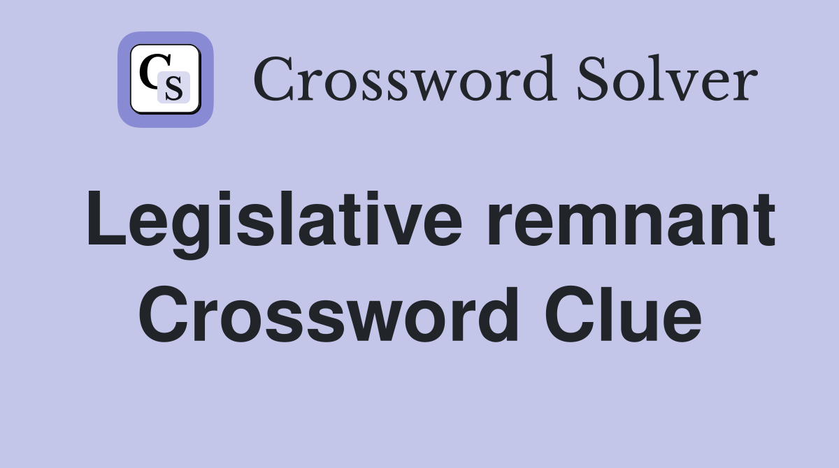 Legislative remnant Crossword Clue Answers Crossword Solver