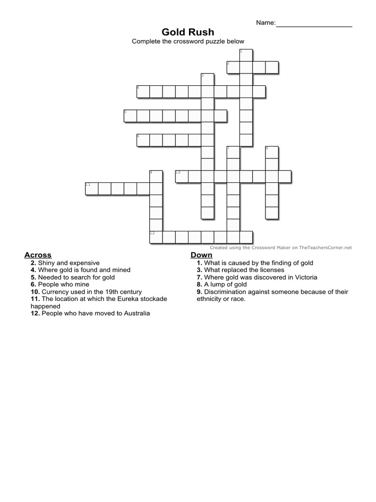 The Gold Rush Crossword Puzzle US History Printable by TechCheck Lessons