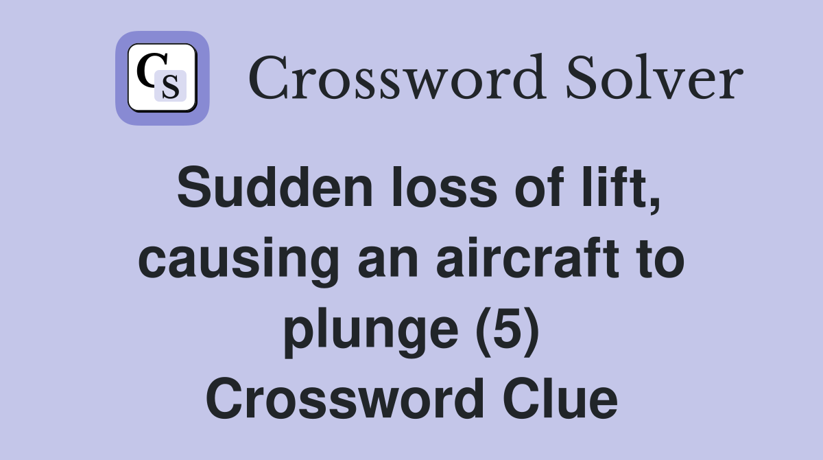 Sudden loss of lift causing an aircraft to plunge (5) Crossword Clue