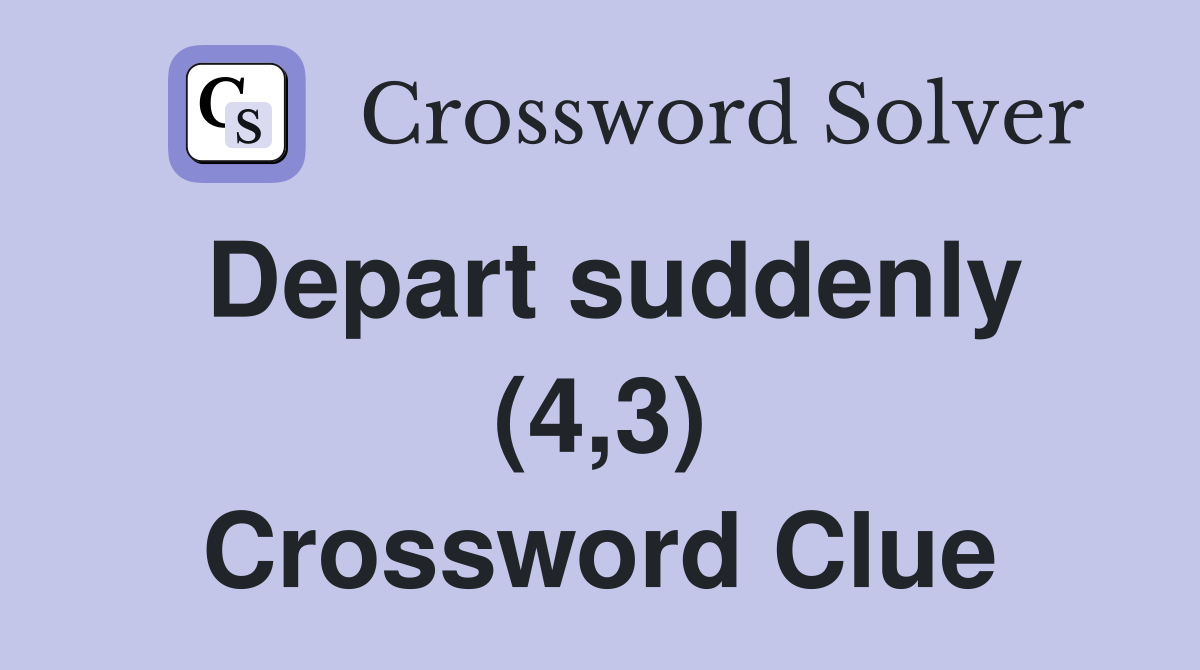 Depart suddenly (4 3) Crossword Clue Answers Crossword Solver