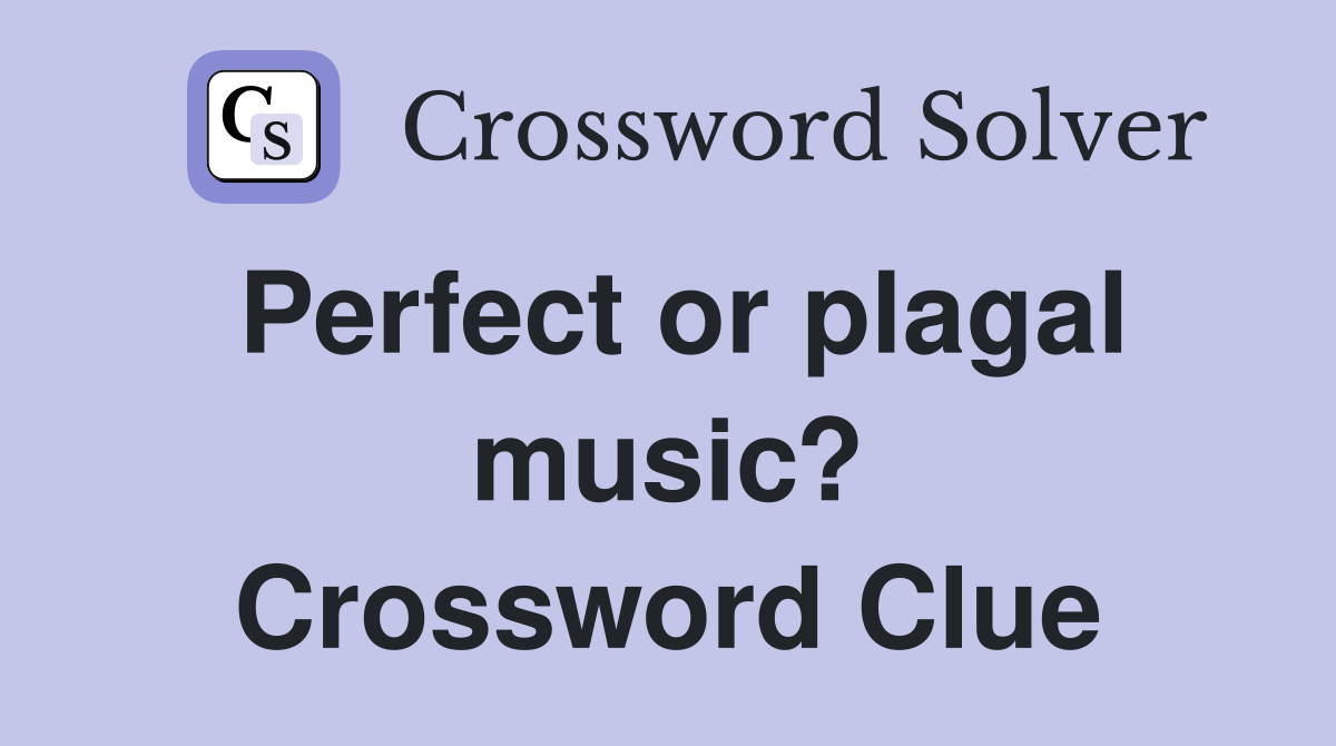 Perfect or plagal music? Crossword Clue Answers Crossword Solver