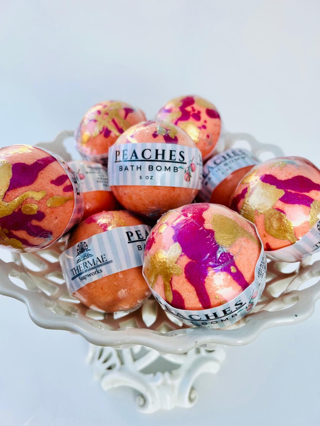 Peaches Bath Bomb Relaxing Sudsy Foamy Bath Bomb Etsy