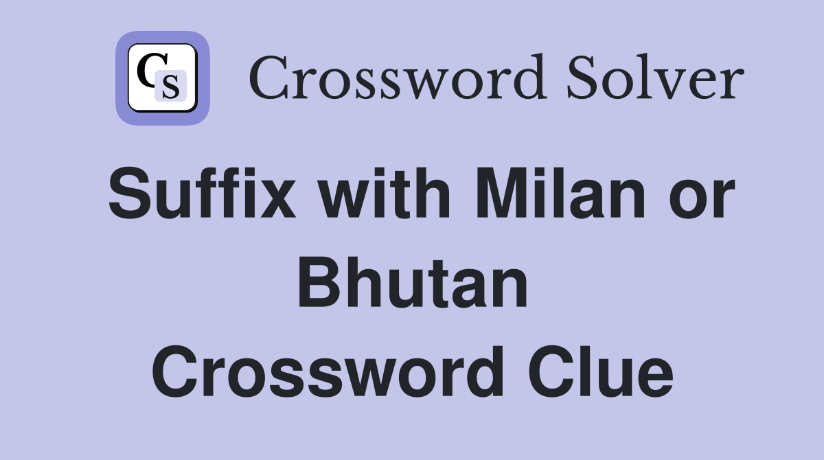 Suffix with Milan or Bhutan Crossword Clue Answers Crossword Solver
