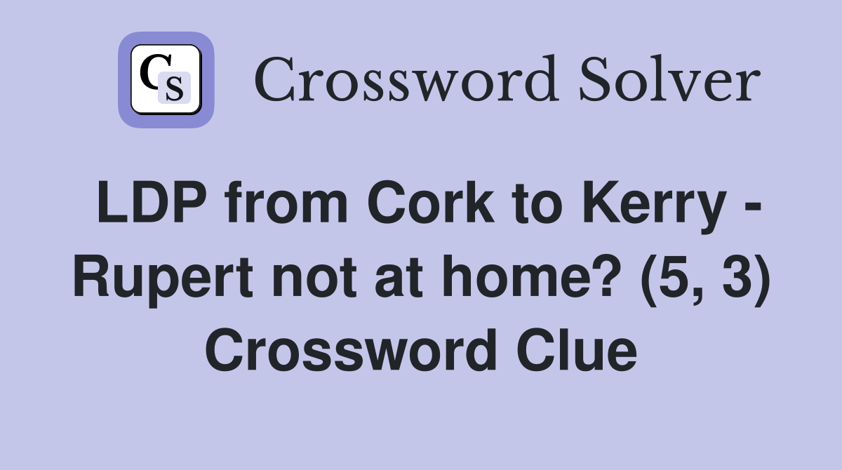 LDP from Cork to Kerry Rupert not at home? (5 3) Crossword Clue