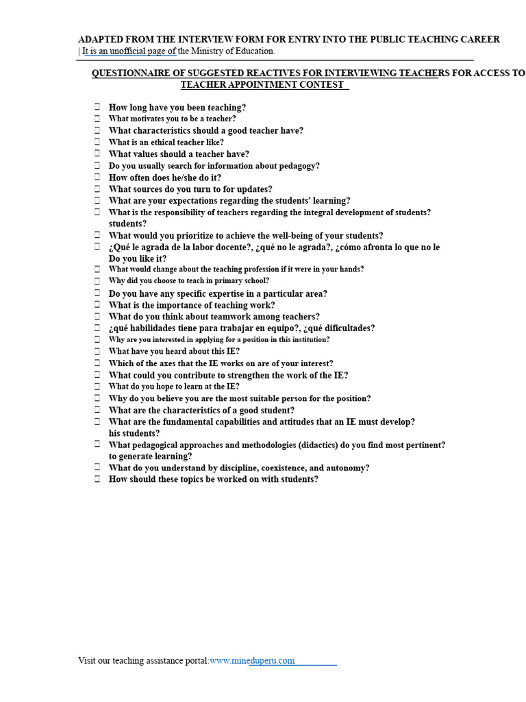 Teacher Interview MINEDU Suggested PDF Teachers Pedagogy