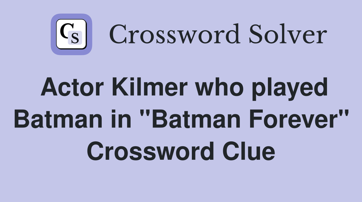 Actor Kilmer who played Batman in quot Batman Forever quot Crossword Clue