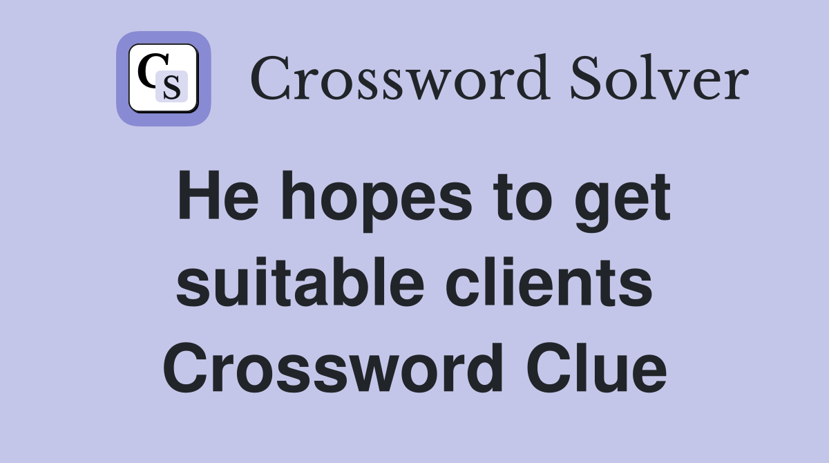 He hopes to get suitable clients Crossword Clue Answers Crossword
