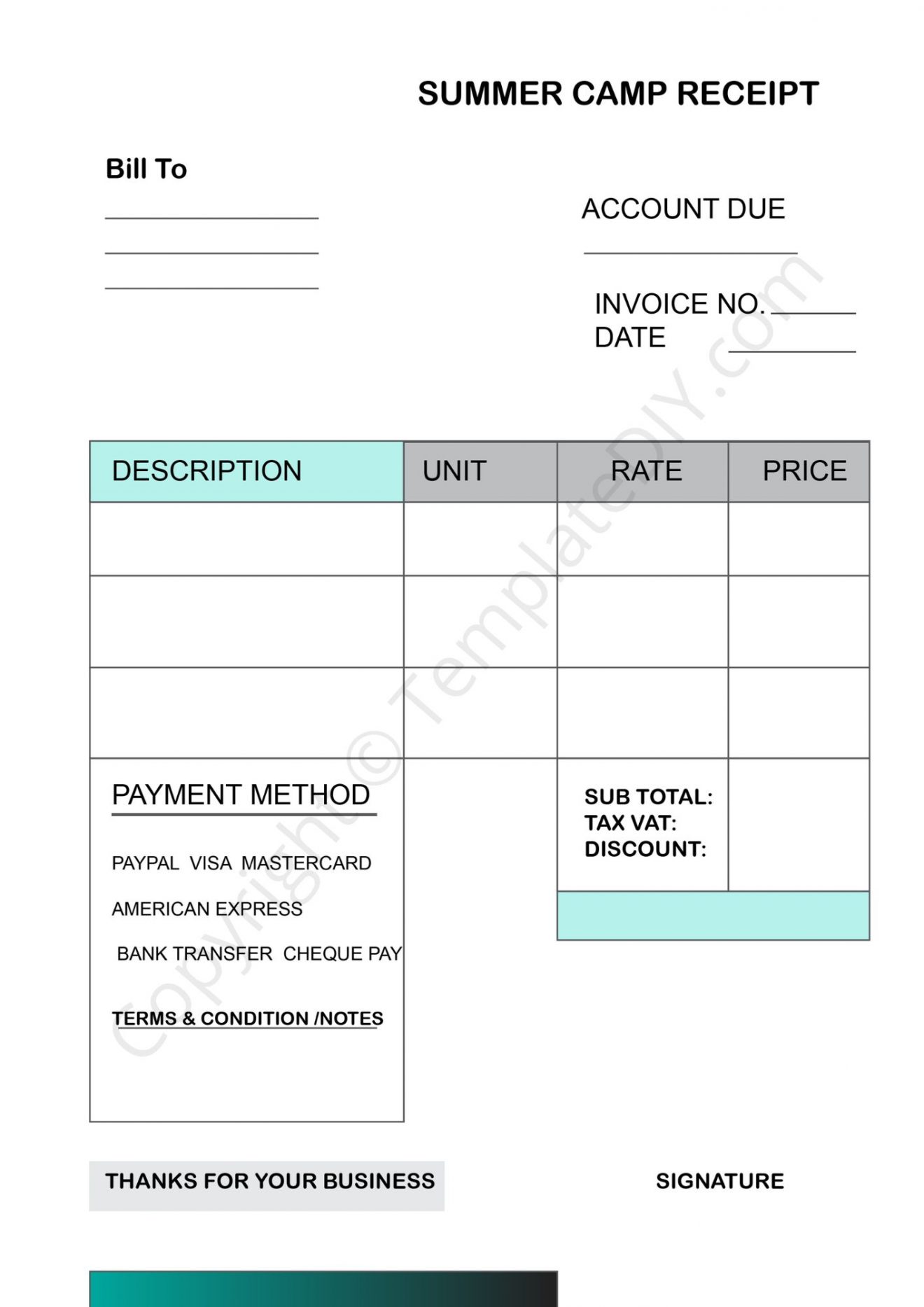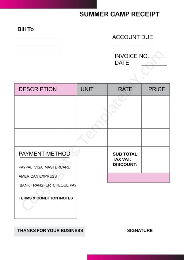 Summer Camp Receipt Template