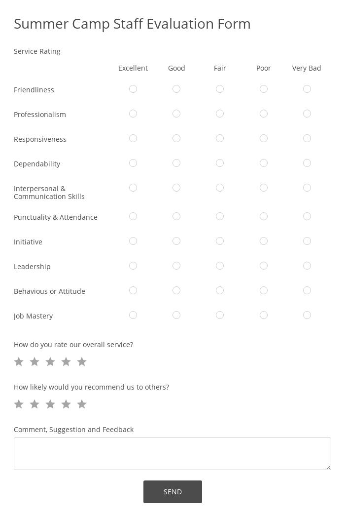 Summer Camp Staff Evaluation Form Template 123FormBuilder