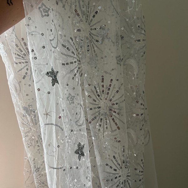 Light Gray Net Tinsel Sheer Lightweight Dress Fabric OneYard