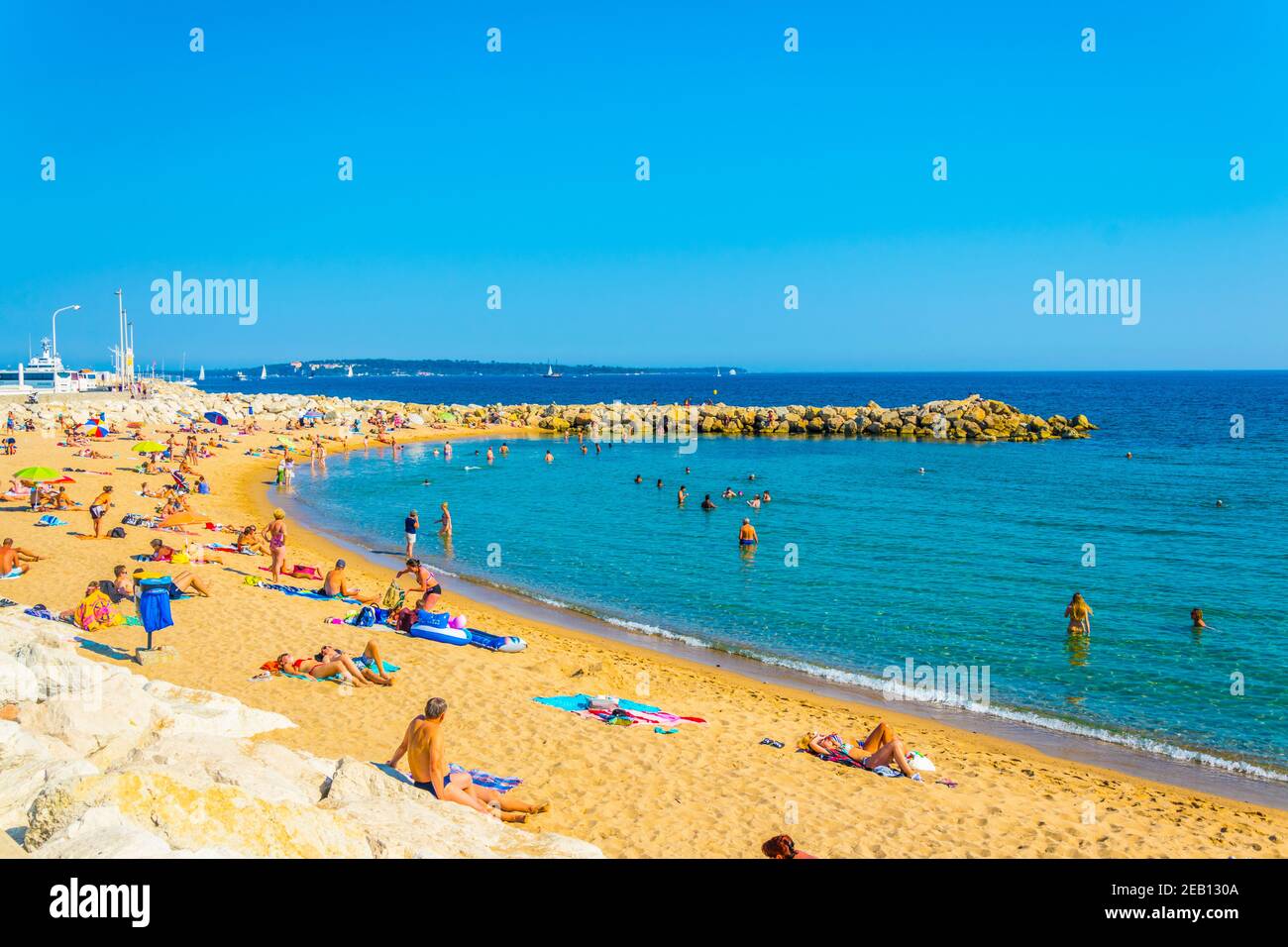 CANNES FRANCE JUNE 12 2017: People are enjoying summer on a beach in