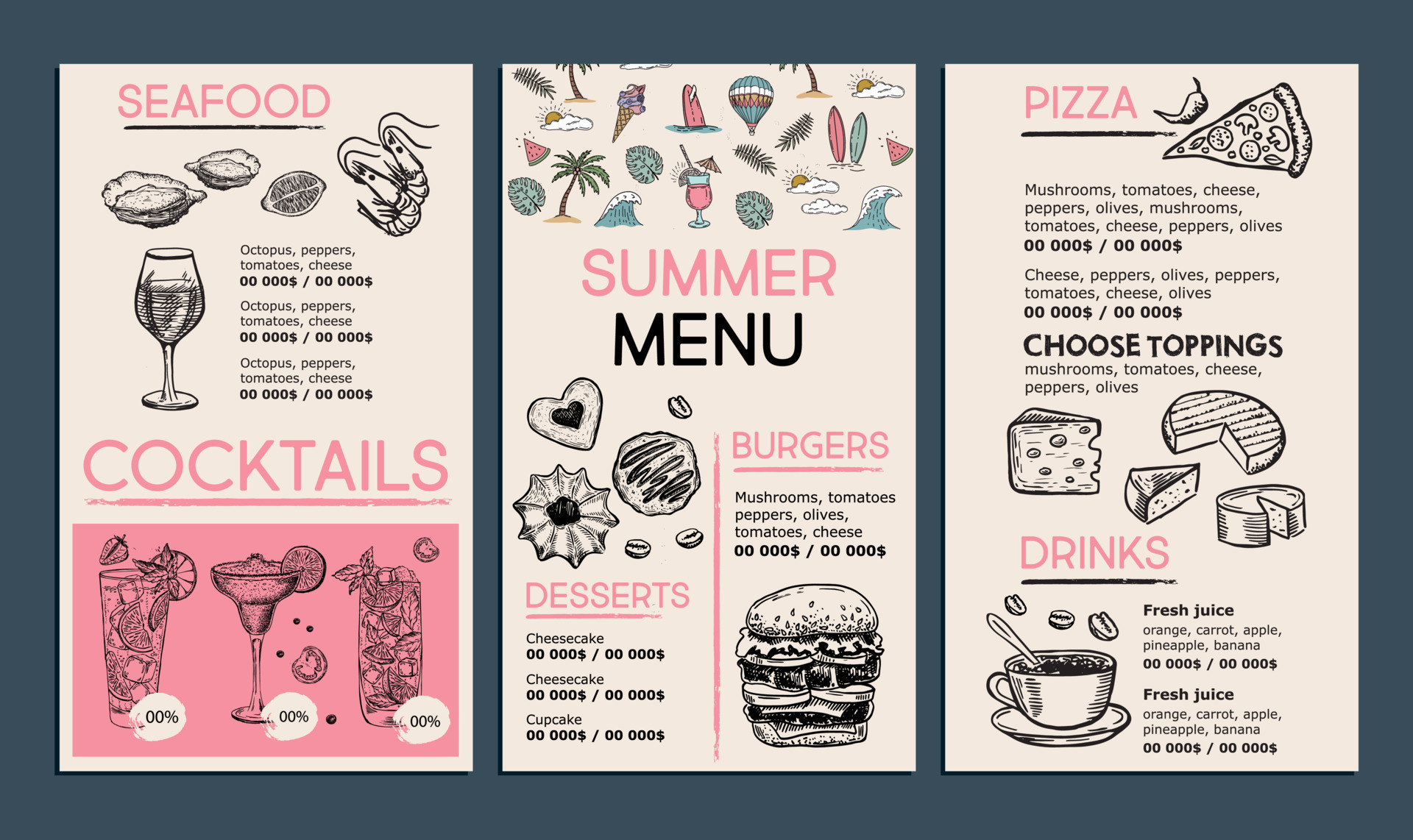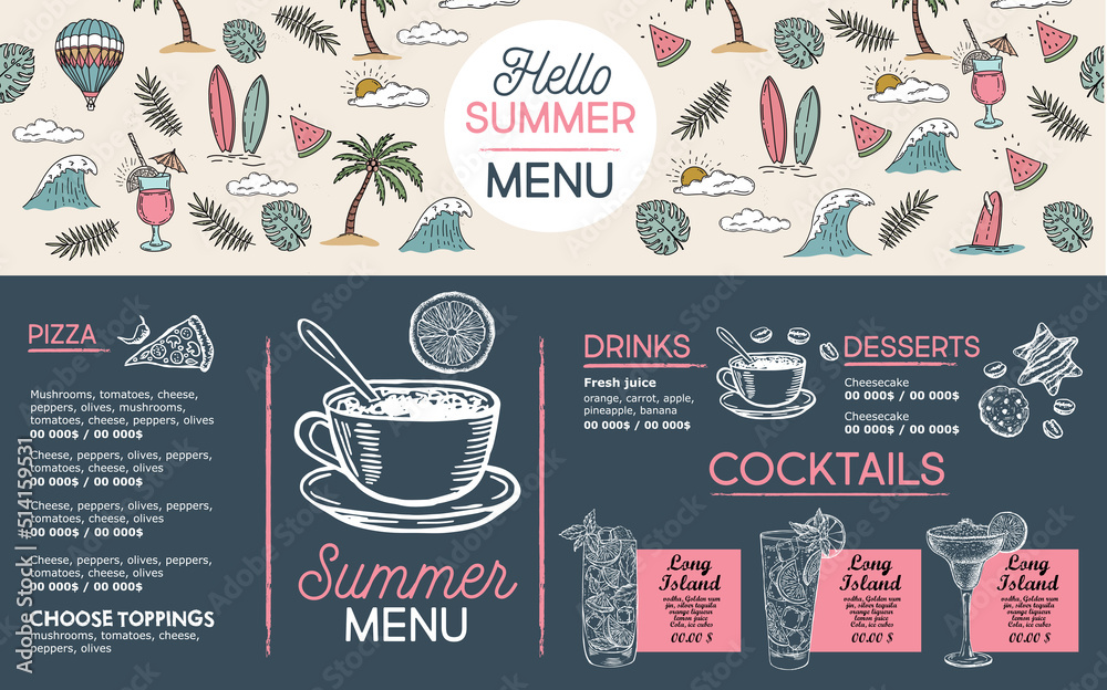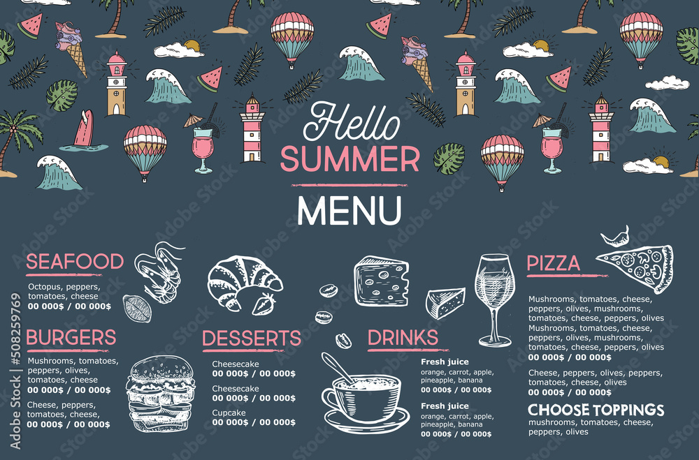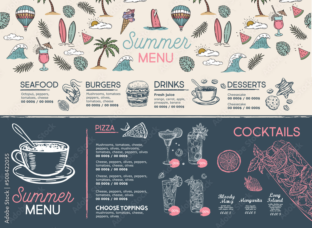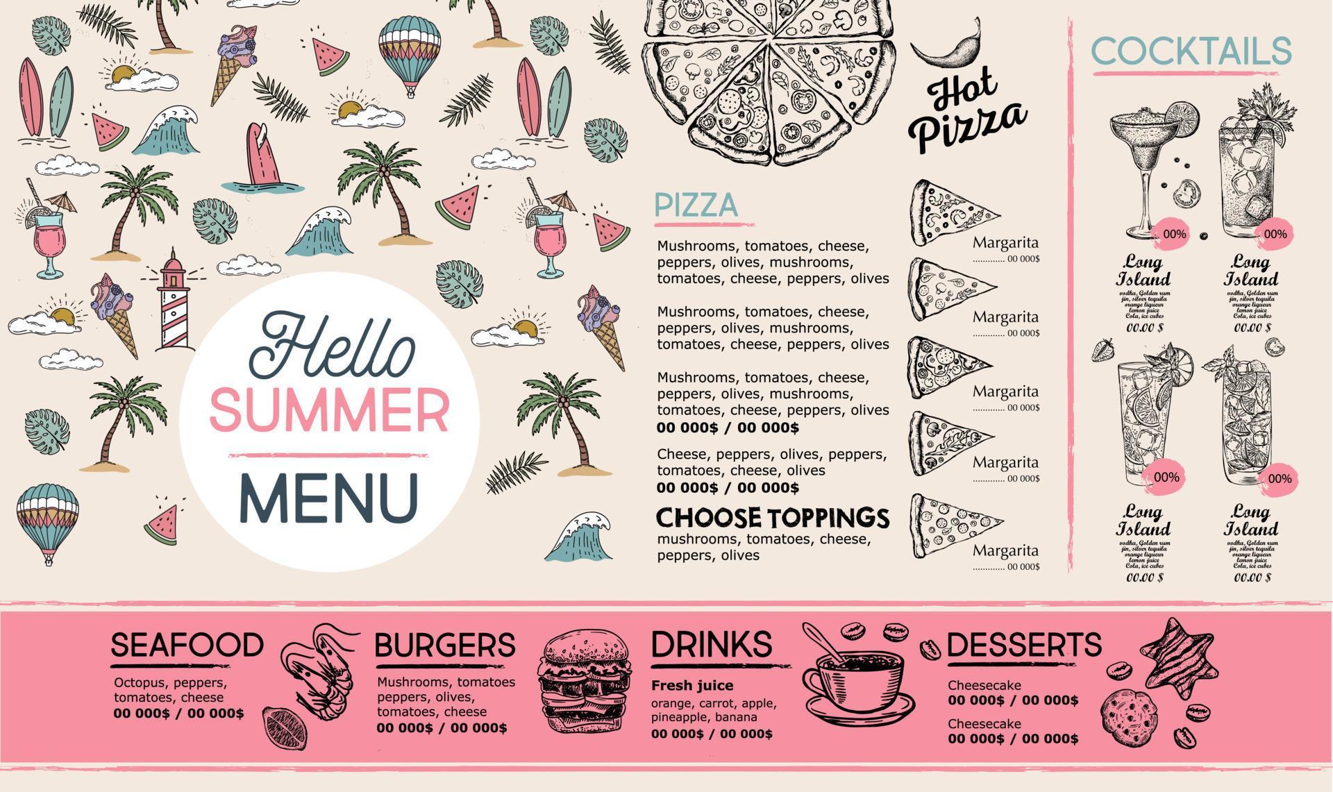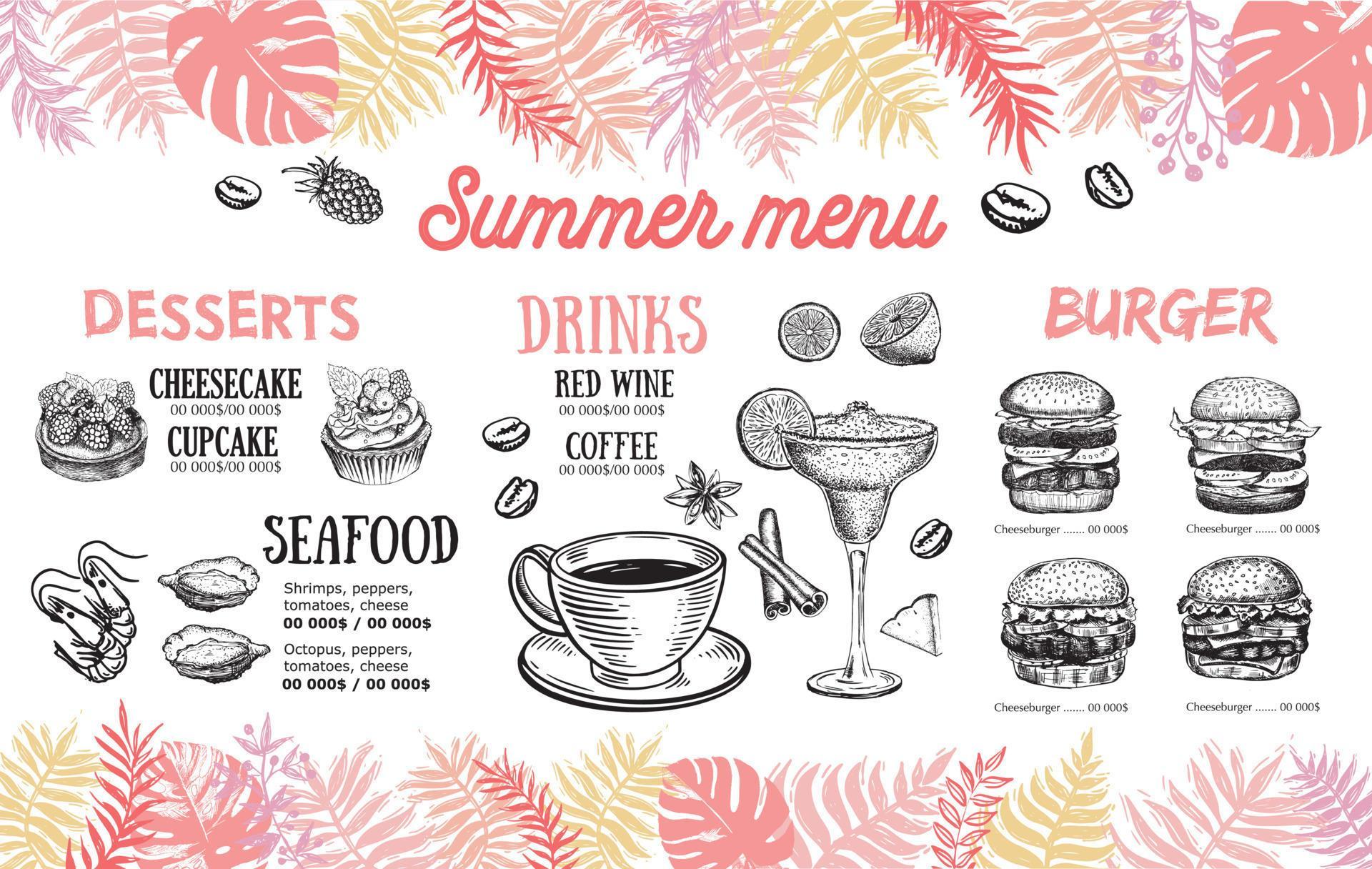 Premium Vector Summer menu template design Food flyer Hand drawn