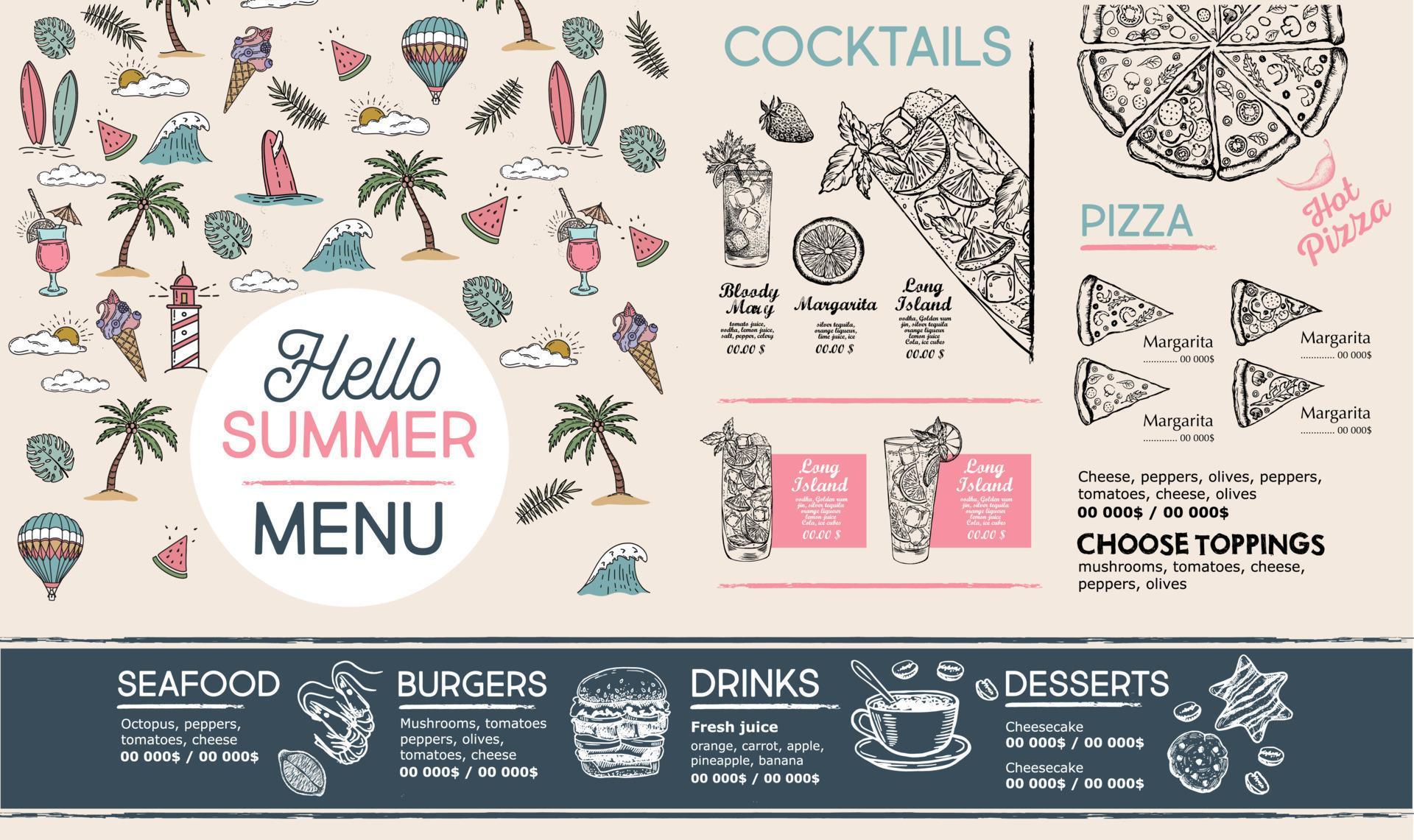 Summer Menu Template Design Food Flyer Handdrawn Style Vector