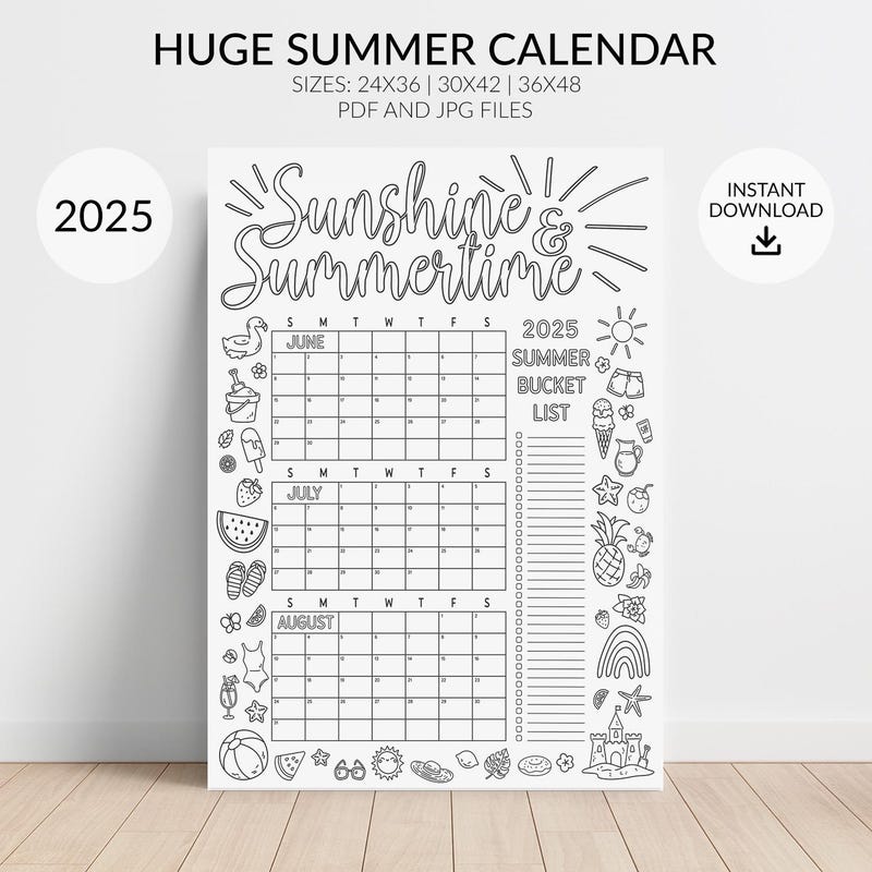 Editable Summer Calendar Coloring Poster Printables Family Summer Fun