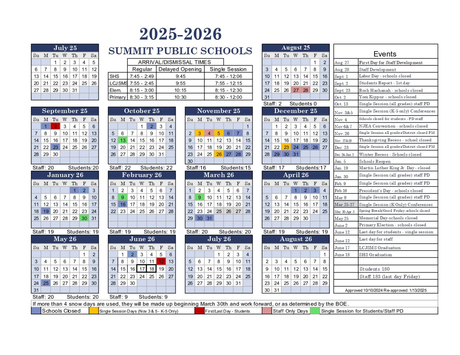 Summit Board of Education Approves 2024 2025 School Calendar Summit
