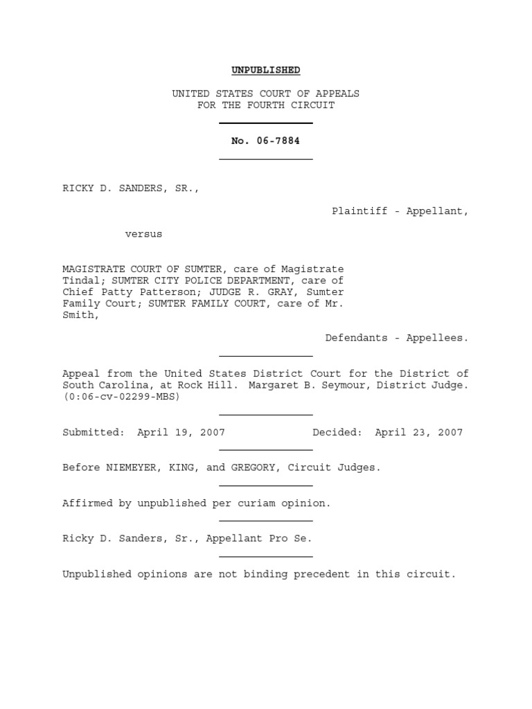 Sanders v Magistrate Court Sumter 4th Cir (2007) PDF