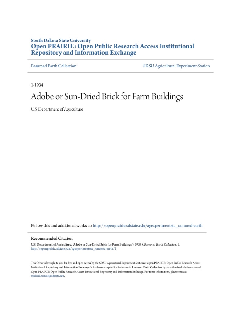 Adobe or Sun Dried Brick For Farm Buildings PDF Plaster Roof