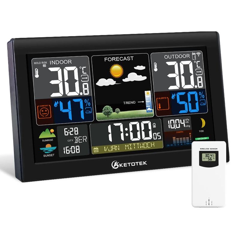 KETOTEK Wireless Indoor Outdoor Weather Station with Sensor LCD Digital