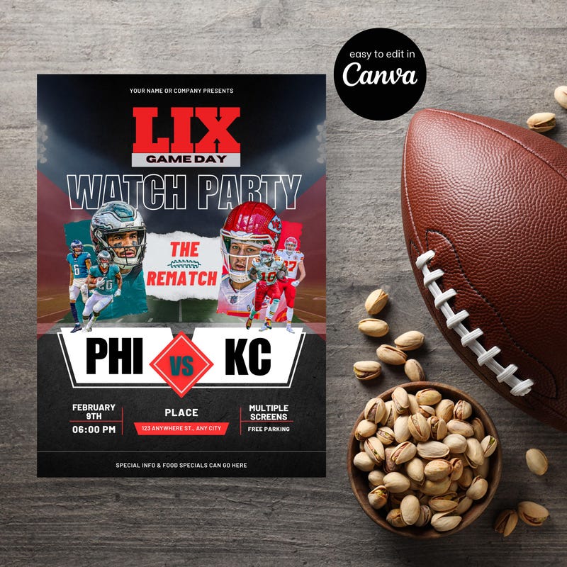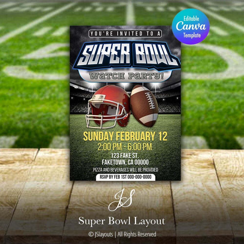 Editable Super Bowl 2024 Flyer Canva Super Bowl Watch Party Flyer