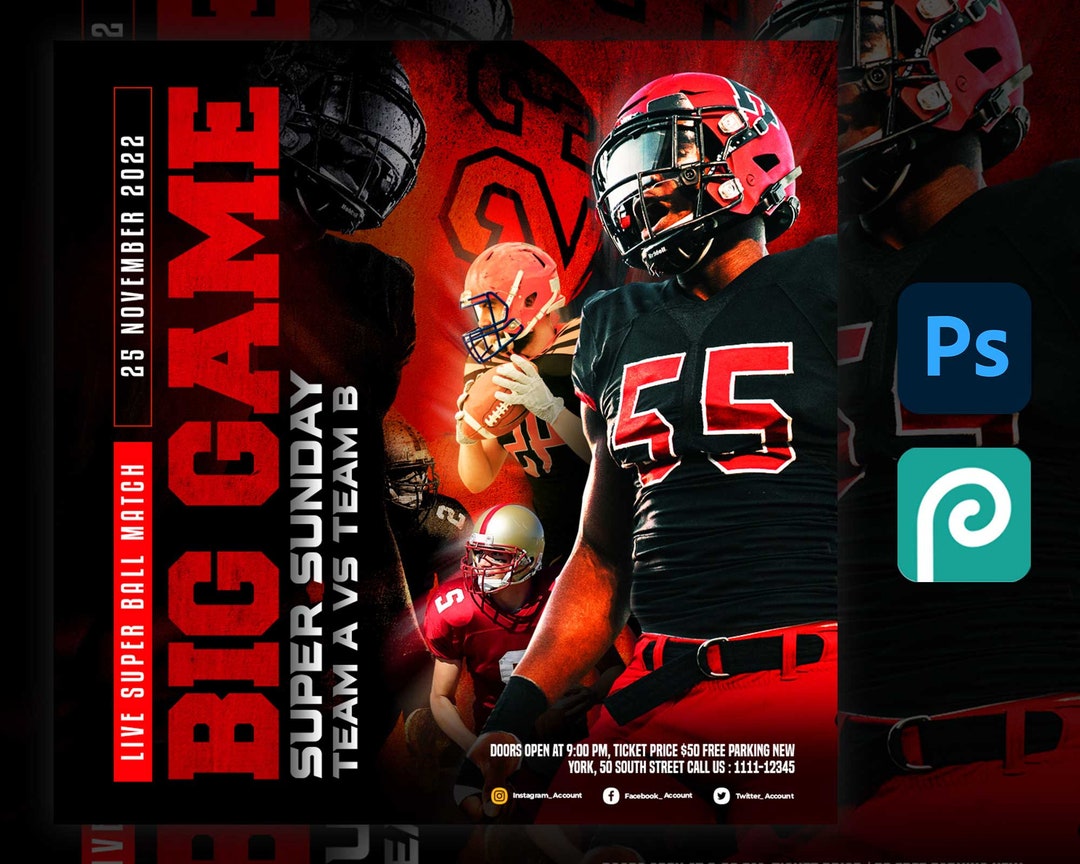 Free NFL Super Bowl Game Day Flyer Design PSD Template