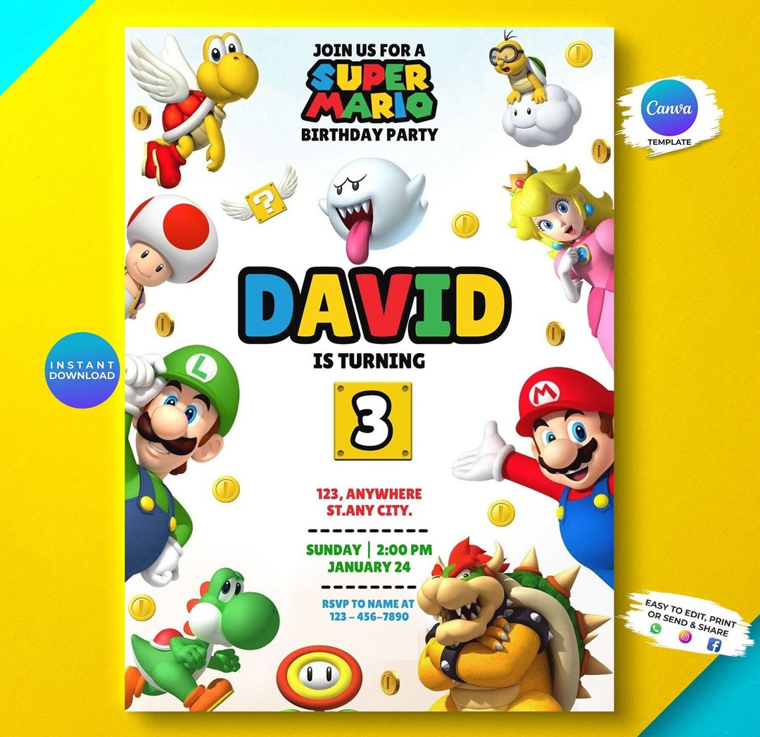 Editable Super Mario Birthday Party Invitation Instant Download Bobotemp