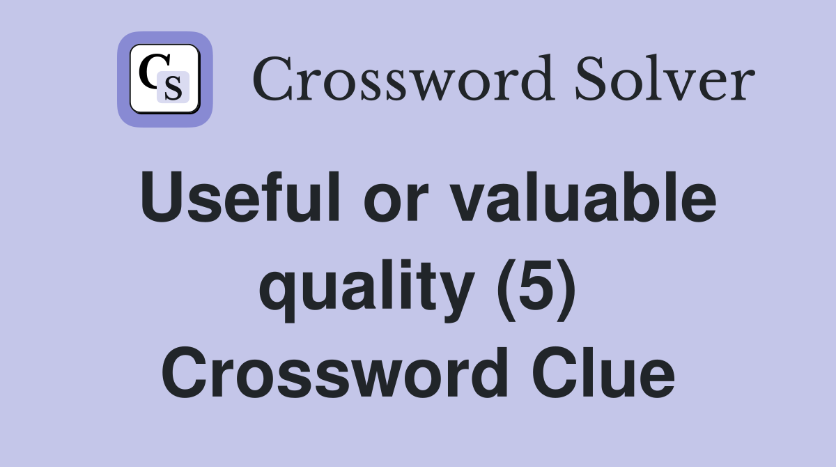 Useful or valuable quality (5) Crossword Clue Answers Crossword Solver