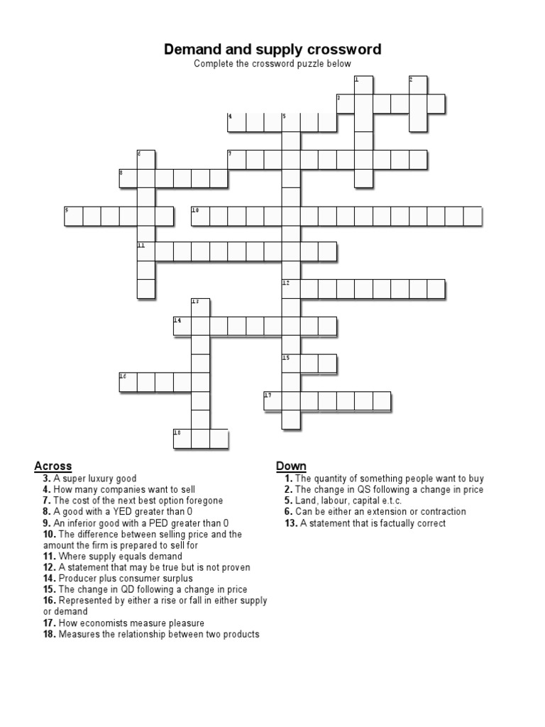 Demand and Supply Crossword: Complete The Crossword Puzzle Below PDF