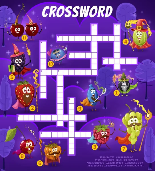 Crossword quiz game grid Cartoon berry mage and wizard characters