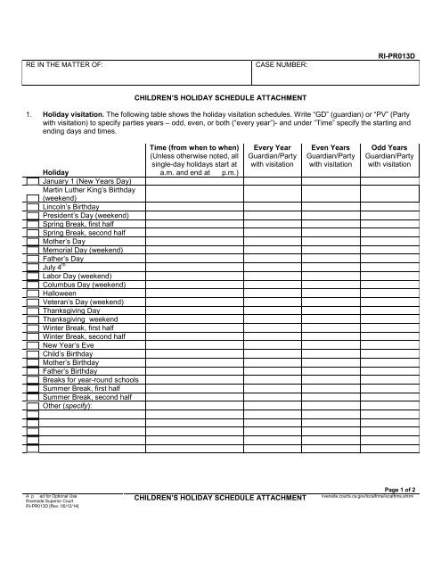 Children #39 s Holiday Schedule Attachment Superior Court Riverside