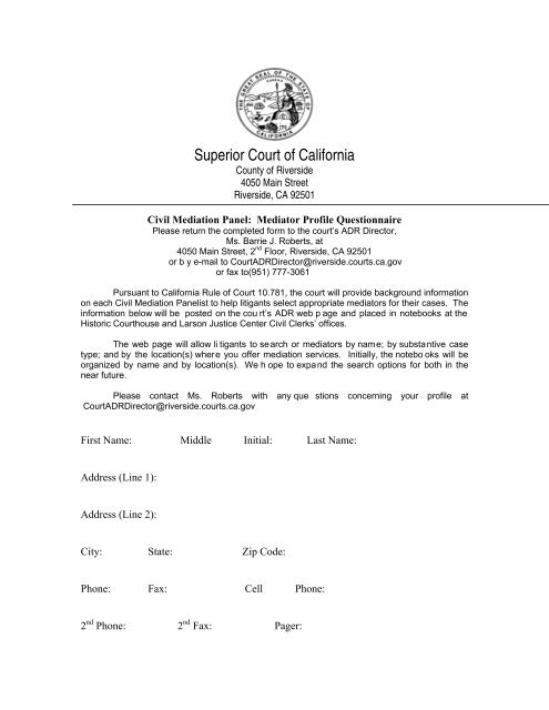 Mediator Profile Questionnaire Superior Court Riverside
