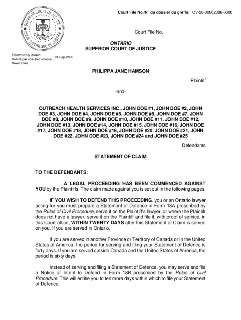 ONTARIO SUPERIOR COURT OF JUSTICE MOTION Class Action