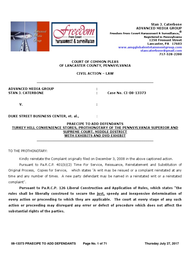 Lancaster County Court Case No 08 CI 13373 Re PRAECIPE TO ADD